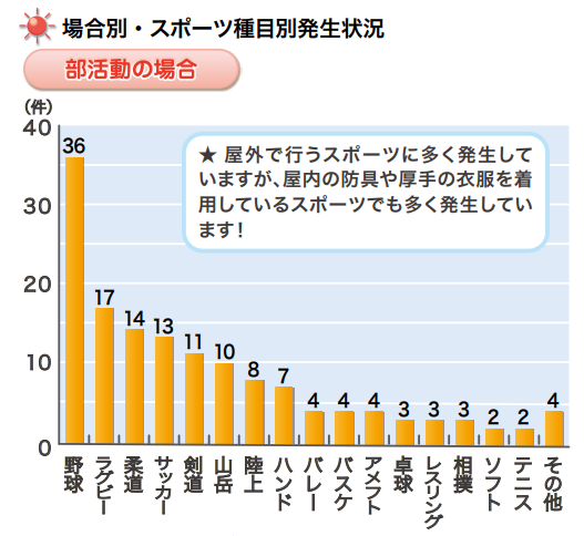 一目瞭然、とびぬけて野球が多いことが確認できます。